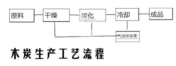 在炭化過程中,木材中的有機物被熱解,形成了揮發(fā)性有機物和固體木炭。高溫炭化過程中,揮發(fā)性有機物分解產(chǎn)生大量可燃液體(醋酸、甲醇、木焦油等)和可燃性氣體(甲烷、乙烯等),這些可燃性氣體通過煙氣回收凈化系統(tǒng)過濾后返回燃燒室內(nèi)燃燒,升高木材炭化設(shè)備的爐溫,將木材原料在高溫下干餾成木炭。
